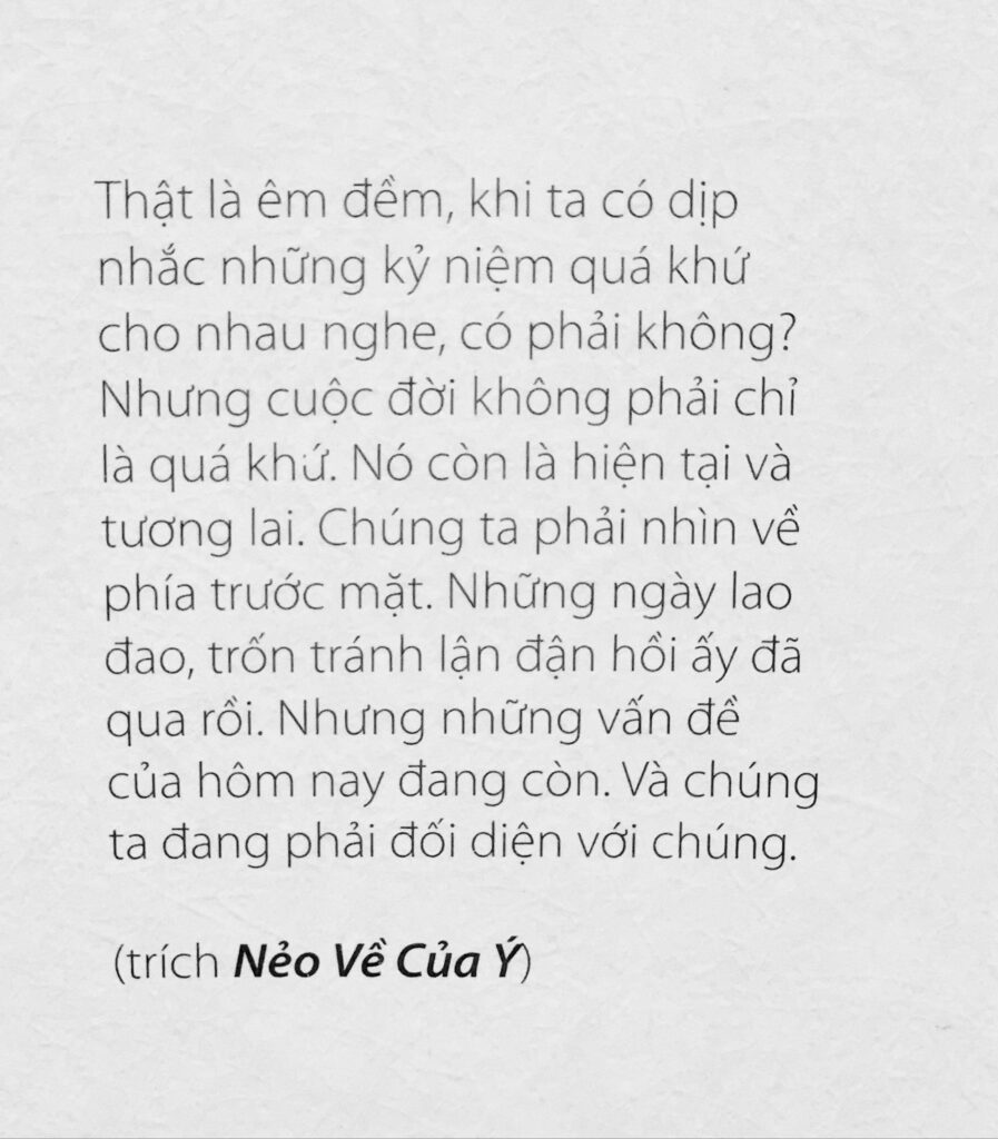 Đọc Nẻo Về Của Ý, ta nghe Thầy kể chuyện về những tháng năm sống xa xứ, về Phương Bối – một nơi chốn không chỉ là tu viện mà là ngôi nhà tinh thần, là điểm tựa tâm linh. Trong từng câu chữ ấy, ta thấy sự cô đơn, nhớ nhung, nhưng cũng đầy sự bình an, thanh tịnh, bởi Thầy luôn tìm thấy cách trở về với tâm hồn mình giữa những khoảng cách địa lý và khó khăn. Chỉ qua những câu chuyện giản dị mà ta thấy trong đó biết bao là thương, bao nhiêu là sự nhẫn nại, điều chuyển tâm ý giữa những khó khăn của cuộc đời. Những cái tên như “Phương Bối”, “Nguyên Hưng” là ai ta không quen mà mỗi khi nghe Thầy gọi trong sách cũng thấy sao thân thương thế. Nghe trong lòng mình có một điều gì đó rung động, như một nhịp đập rất khẽ của tình thương và nỗi nhớ.